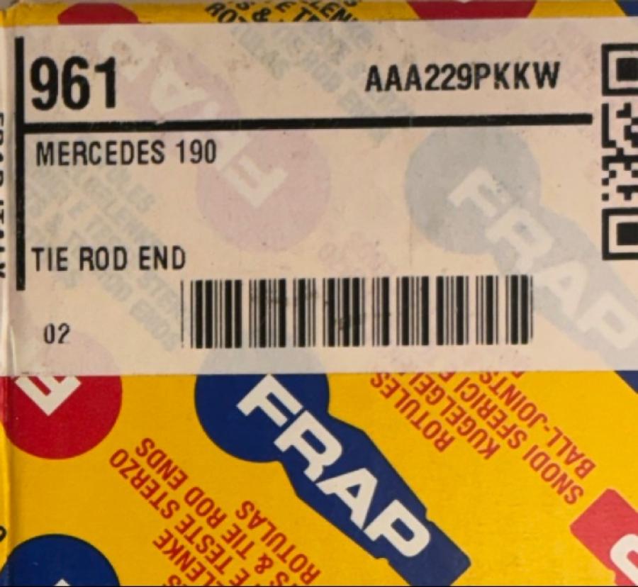 Image Image Image 1 2 3 Tie Rod End Mercedes Bens W201 0003386310, FR961 SKU SUSTFR961 Steering W201 190 335,00 NOK inkl. 25% MVA In Stock